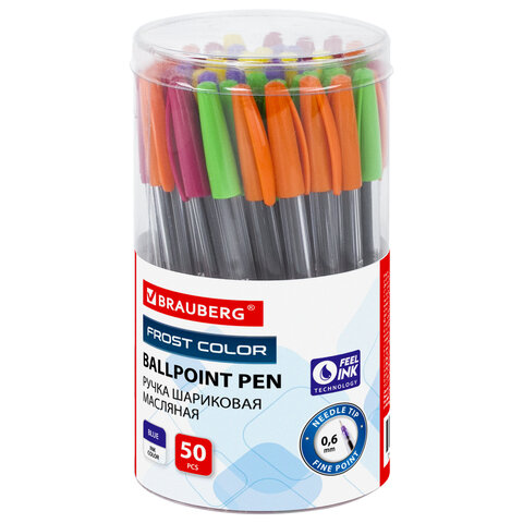 Ручка шариковая масляная BRAUBERG "Frost Color", СИНЯЯ, ассорти, узел 0,6 мм, линия письма 0,3 мм, 142935