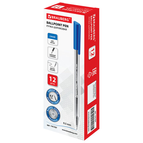 Ручка шариковая масляная BRAUBERG "Marine Classic", СИНЯЯ, трехгранная, корпус прозрачный, узел 0,7 мм, линия письма 0,5 мм, 141707