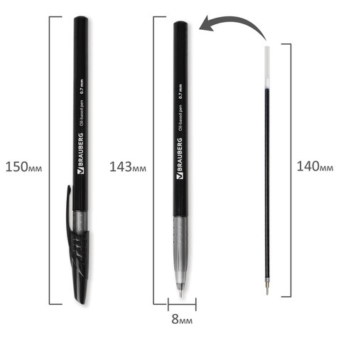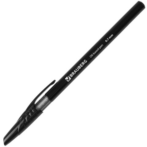 Ручка шариковая масляная BRAUBERG "Oil Base", ЧЕРНАЯ, корпус черный, узел 0,7 мм, линия письма 0,35 мм, 141635