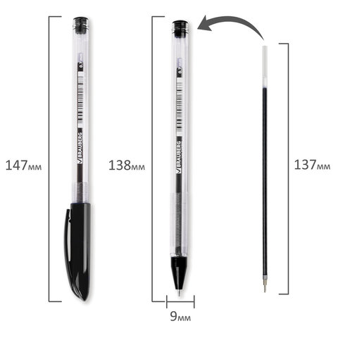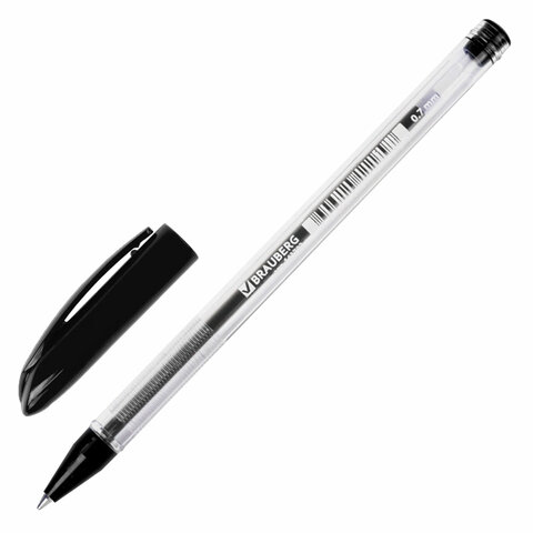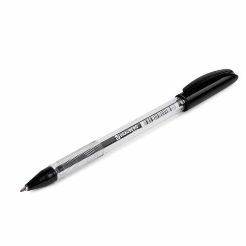 Ручка шариковая масляная BRAUBERG "Rite-Oil", ЧЕРНАЯ, корпус прозрачный, узел 0,7 мм, линия письма 0,35 мм, 142147
