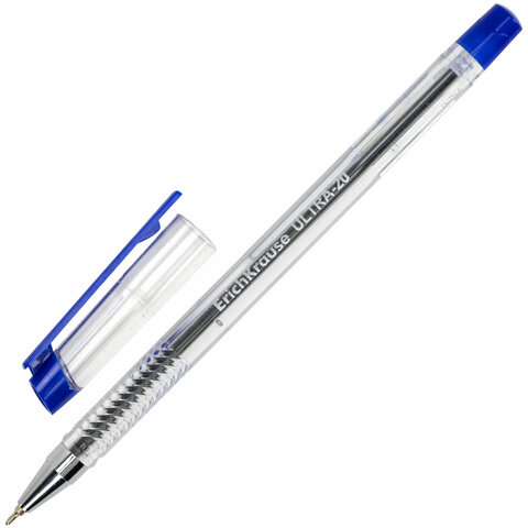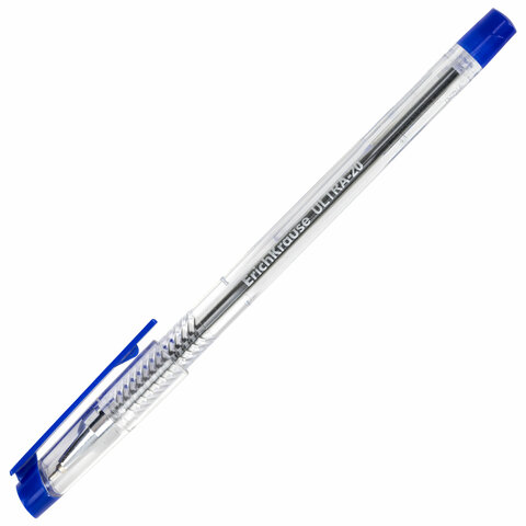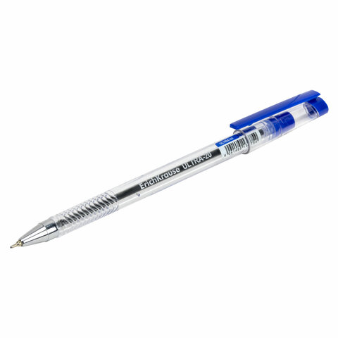 Ручка шариковая масляная ERICH KRAUSE "Ultra-20", СИНЯЯ, корпус прозрачный, узел 0,7 мм, линия письма 0,26 мм, 13875