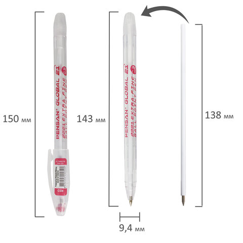 Шариковая ручка PENSAN "Global-21" с масляными чернилами в классическом круглом корпусе из прозрачного пластика.