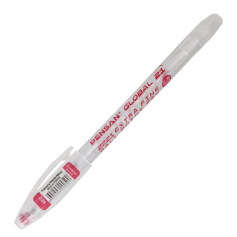 Ручка шариковая масляная PENSAN "Global-21", КРАСНАЯ, корпус прозрачный, узел 0,5 мм, линия письма 0,3 мм, 2221, 2221/12
