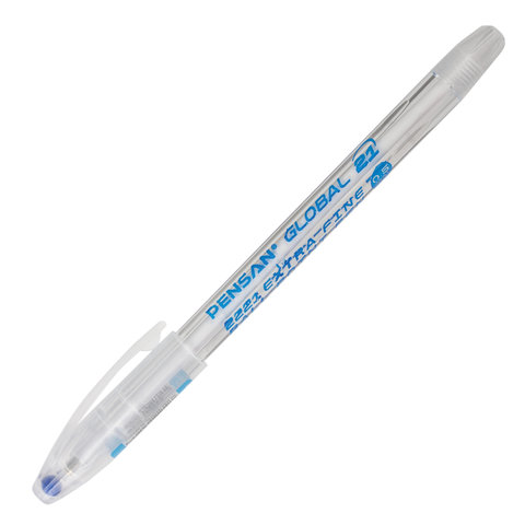 Ручка шариковая масляная PENSAN "Global-21", СИНЯЯ, корпус прозрачный, узел 0,5 мм, линия письма 0,3 мм, 2221