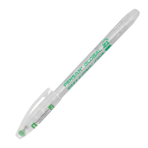 Ручка шариковая масляная PENSAN "Global-21", ЗЕЛЕНАЯ, корпус прозрачный, узел 0,5 мм, линия письма 0,3 мм, 2221, 2221/12