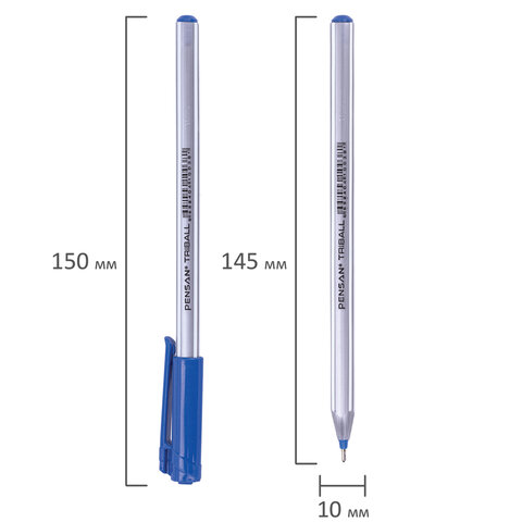 Ручки PENSAN "Triball" поставляется в стильном удобном трехгранном пластиковом корпусе серебристого цвета с деталями в цвет чернил.