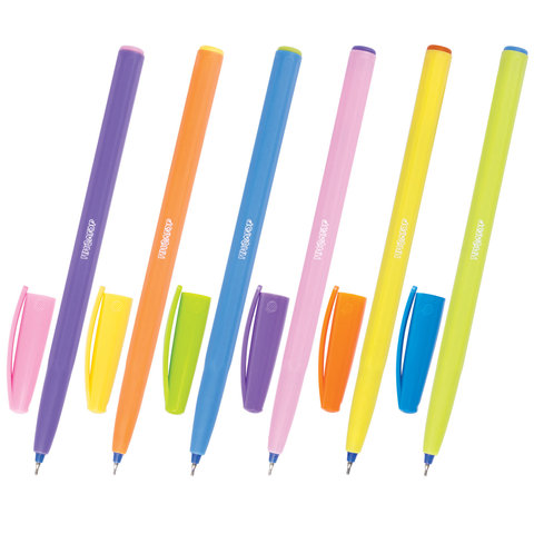 Ручка шариковая масляная ПИФАГОР, СИНЯЯ, безопасный корпус ассорти, узел 0,6 мм, линия письма 0,3 мм, 142685
