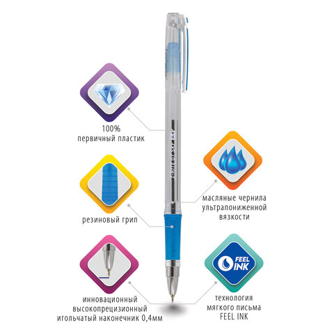 Ручка шариковая масляная с грипом BRAUBERG "i-Rite GT SKY", СИНЯЯ, голубые детали, узел 0,4 мм, 143299