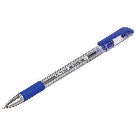 Ручка шариковая масляная с грипом BRAUBERG "Max-Oil", СИНЯЯ, игольчатый узел 0,7 мм, линия письма 0,35 мм, 141701