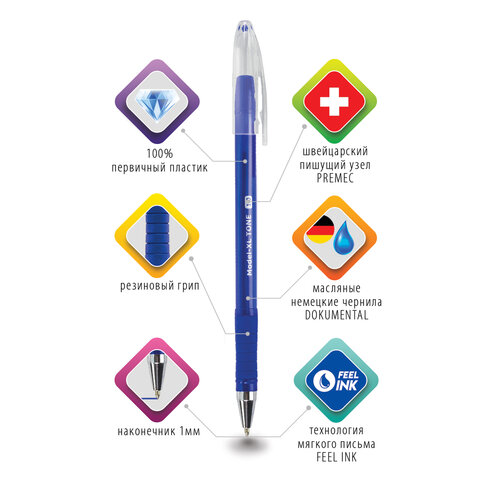 Ручка шариковая масляная с грипом BRAUBERG "Model-XL TONE", СИНЯЯ, узел 1,0 мм, линия письма 0,5 мм, 143248