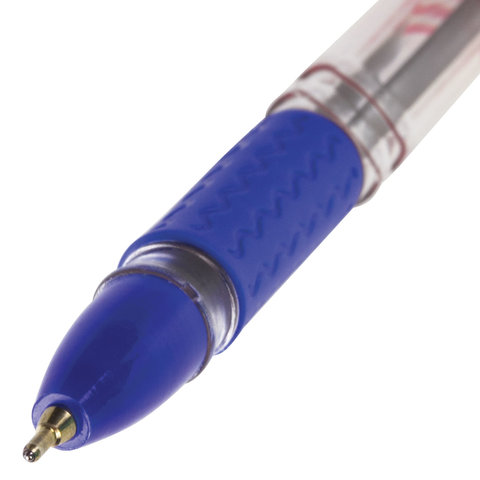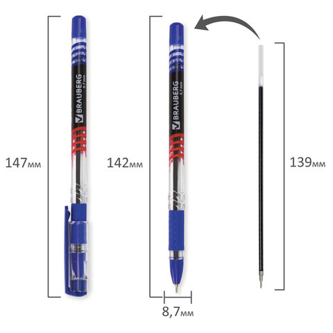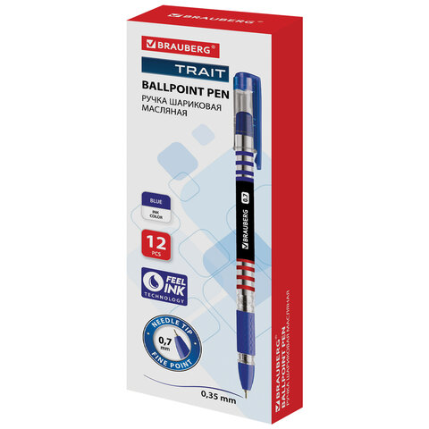 Ручка шариковая масляная с грипом BRAUBERG "Trait", СИНЯЯ, печать, узел 0,7 мм, линия письма 0,35 мм, 142697