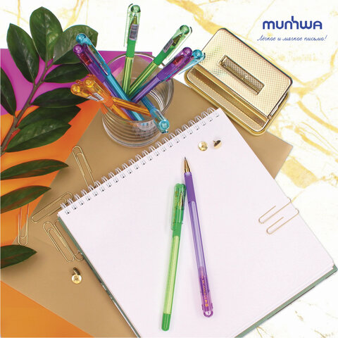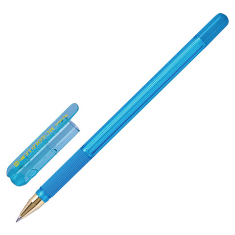 Классический корпус с мягкой резиновой грип-зоной. Стабильная яркая непрерывная линия письма. В ассортименте 4 цвета корпуса: голубой, зеленый, оранжевый и фиолетовый