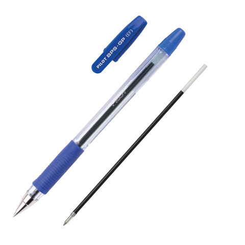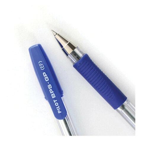 Ручка шариковая масляная с грипом PILOT "BPS-GP", СИНЯЯ, корпус прозрачный, узел 0,5 мм, линия письма 0,18 мм, BPS-GP-EF, BPS-GP-ЕF