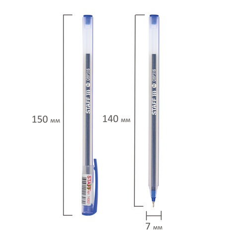 Ручка шариковая масляная STAFF "OBP-316", СИНЯЯ, корпус матовый, игольчатый узел 0,6 мм, линия письма 0,3 мм, 143021