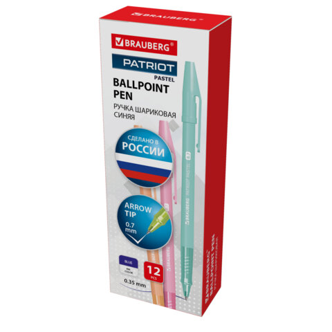 Ручка шариковая РОССИЯ "PATRIOT PASTEL", СИНЯЯ, корпус ассорти, 0,7 мм, линия письма 0,35 мм, BRAUBERG, 143967