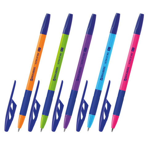 Ручка шариковая с грипом BRAUBERG "ULTRA GT COLOR", СИНЯЯ, корпус ассорти, линия 0,35 мм, 144055