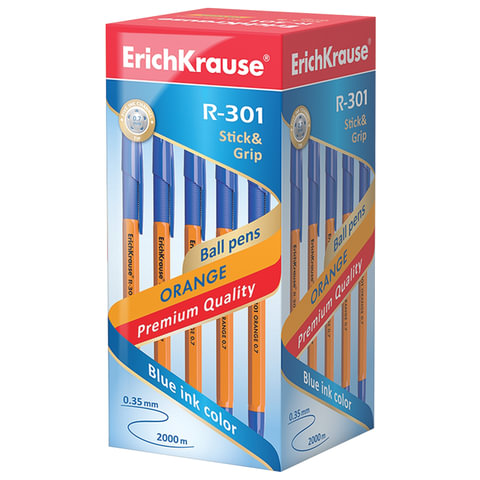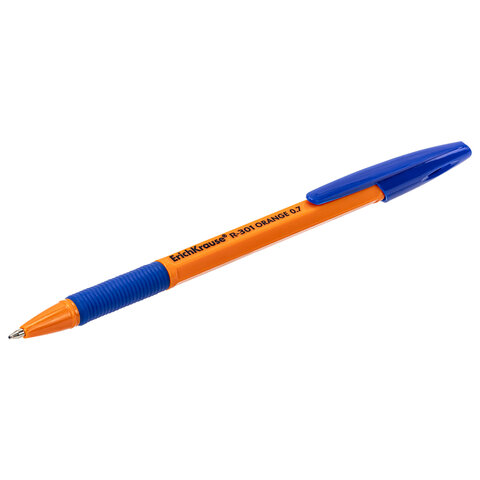 Ручка шариковая с грипом ERICH KRAUSE "R-301 Grip", СИНЯЯ, корпус оранжевый, узел 0,7 мм, линия письма 0,35 мм, 39531
