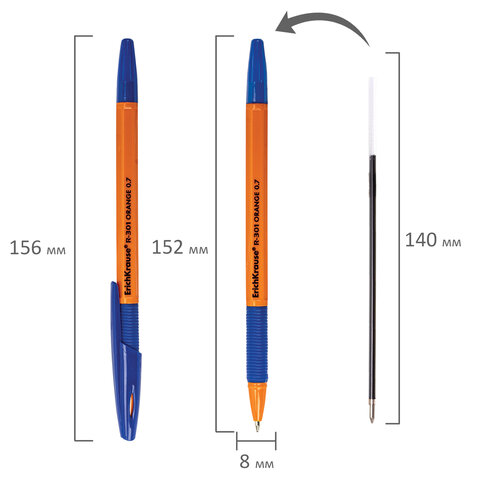Классическая шариковая ручка ERICH KRAUSE серии R-301 со стандартным типом пишущего узла и заменяемым стержнем.