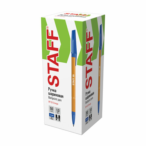 Ручка шариковая STAFF "Basic BP-03 Orange", СИНЯЯ, корпус оранжевый, узел 1 мм, линия письма 0,5 мм, 143741