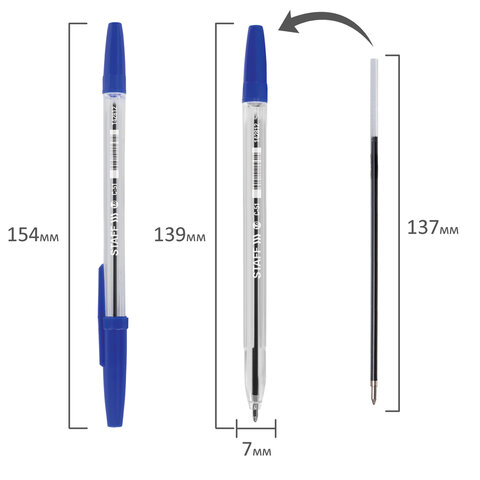 Ручка шариковая STAFF "C-51", СИНЯЯ, корпус прозрачный, узел 1 мм, линия письма 0,7 мм, 142812