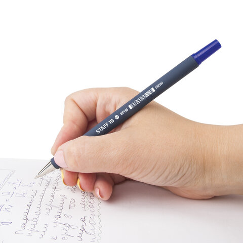Ручка шариковая STAFF "EVERYDAY" BP-190, СИНЯЯ, корпус прорезиненный синий, узел 0,7 мм, линия письма 0,35 мм, 142397