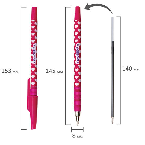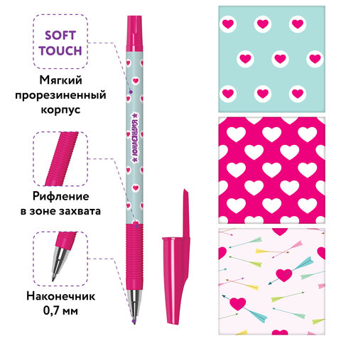 Ручка шариковая ЮНЛАНДИЯ "HEARTS", синяя, SOFT TOUCH покрытие, узел 0,7 мм, линия письма 0,35 мм, 143729