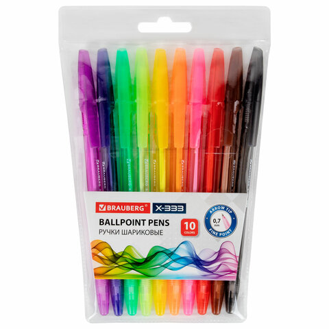 Ручки шариковые BRAUBERG "X-333", НАБОР 10 цветов, узел 0,7 мм, линия 0,35 мм, 144251
