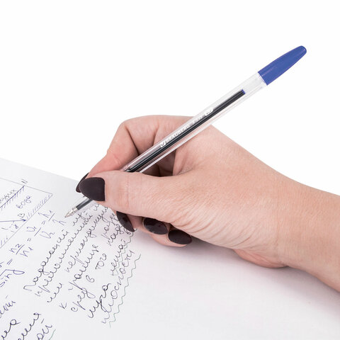 Шариковая ручка BRAUBERG "X-333" с прозрачным корпусом и удобной трехгранной зоной захвата с рифлением, препятствующим скольжению пальцев при письме.