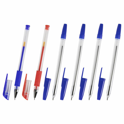 Ручки шариковые и гелевые STAFF "Basic ST-01", НАБОР 6 ШТУК, АССОРТИ, узел 0,7 мм, линия письма 0,35 мм, 144080