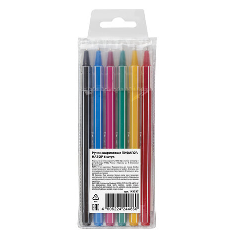 Ручки шариковые ПИФАГОР "Веселые зверята", НАБОР 6 шт., АССОРТИ, узел 0,7 мм, линия письма 0,35 мм, 143337, BP251