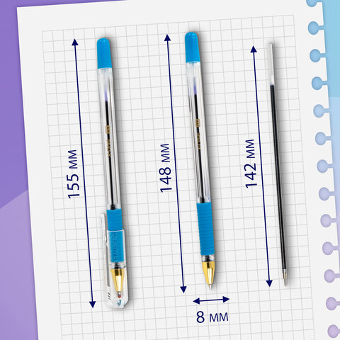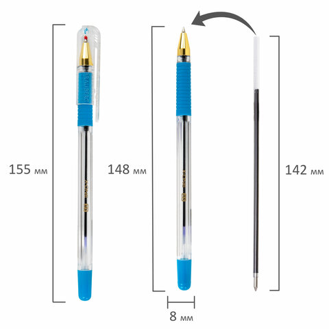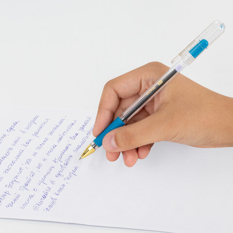Ручки шариковые с грипом BRAUBERG "X-ONE", НАБОР 10 ШТУК, СИНИЕ, корпус прозрачный, узел 0,5 мм, линия письма 0,35 мм, 143990