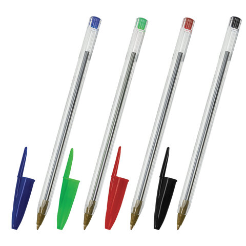Ручки шариковые STAFF "Basic Budget BP-04", НАБОР 4 ЦВЕТА, линия письма 0,5 мм, 143872