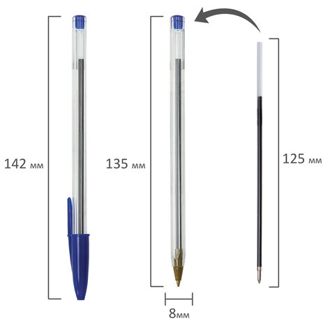 Ручки шариковые STAFF "Basic Budget BP-05", НАБОР 8 штук, СИНИЕ, узел 1 мм, линия письма 0,5 мм, 143874