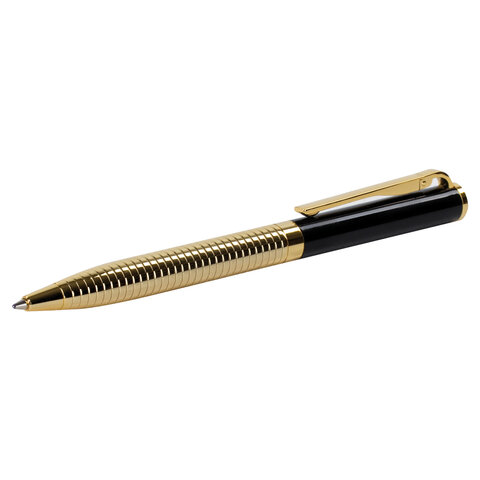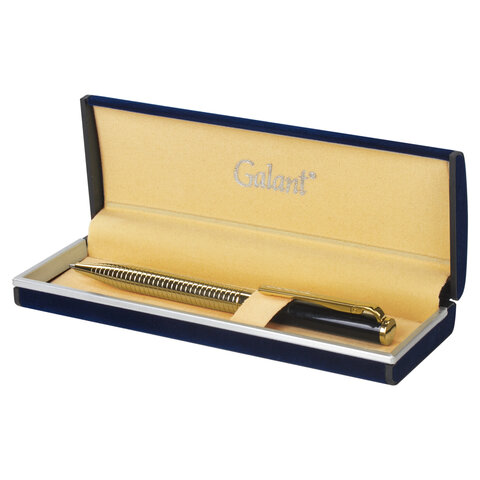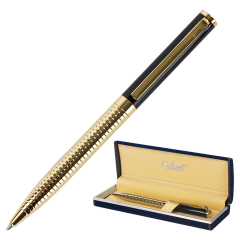 Ручка подарочная шариковая GALANT "Black Melbourne", корпус золотистый с черным, золотистые детали, пишущий узел 0,7 мм, синяя, 141356