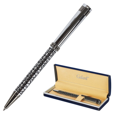 Ручка подарочная шариковая GALANT "Locarno", корпус серебристый с черным, хромированные детали, пишущий узел 0,7 мм, синяя, 141667
