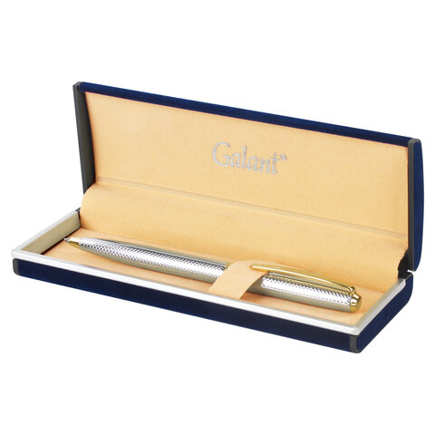 Ручка подарочная шариковая GALANT "Marburg", корпус серебристый с гравировкой, золотистые детали, пишущий узел 0,7 мм, синяя, 141015