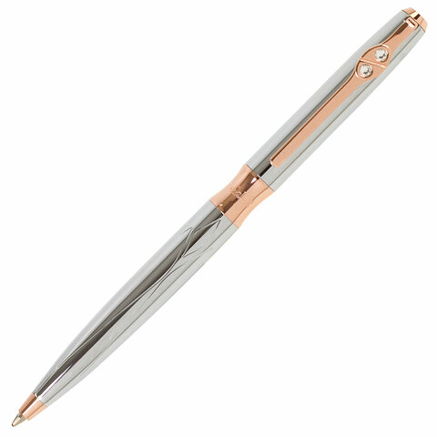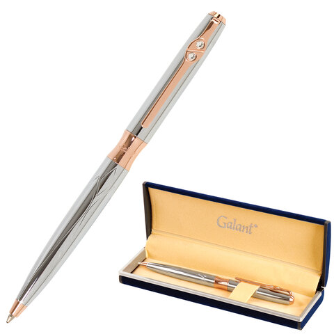 Ручка подарочная шариковая GALANT "NUANCE SILVER", корпус серебристый, детали розовое золото, узел 0,7 мм, синяя, 143520