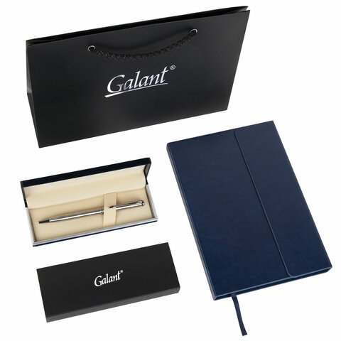 Ручка шариковая GALANT "Arrow Chrome", корпус серебристый, ежедневник недатированный, А5, синий, пакет, 880903