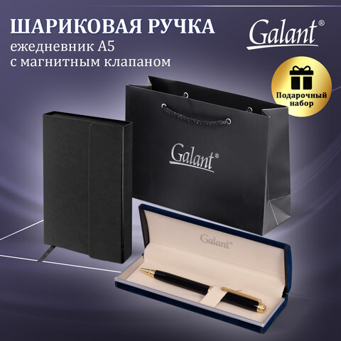 Ручка шариковая GALANT "Black", корпус черный, ежедневник недатированный А5 черный, пакет, 880904