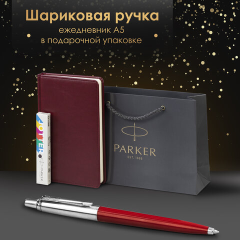 Ручка шариковая PARKER "Jotter Plastic CT", корпус красный, ежедневник А5 красный, пакет, 880897
