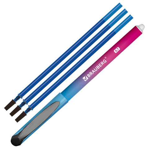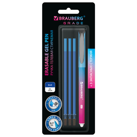 Ручка стираемая гелевая BRAUBERG "Grade", СИНЯЯ, 3 сменных стержня, узел 0,7 мм, линия письма 0,5 мм, 144209