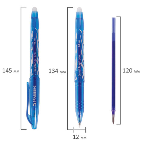 Ручка стираемая гелевая BRAUBERG, СИНЯЯ, узел 0,5 мм, линия 0,35 мм, 142823