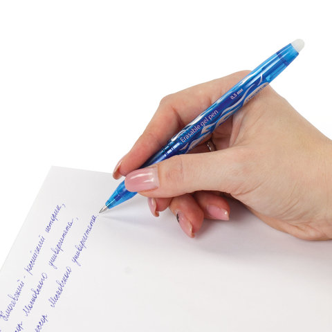 Стираемая ручка BRAUBERG пишет специальными гелевыми чернилами, которые становятся невидимыми при нагревании до 60 °С и выше. Нагрев достигается ластиком, встроенным в корпус ручки. Написанное можно восстановить при температуре ниже –18 °С.