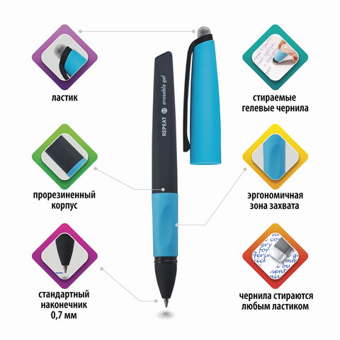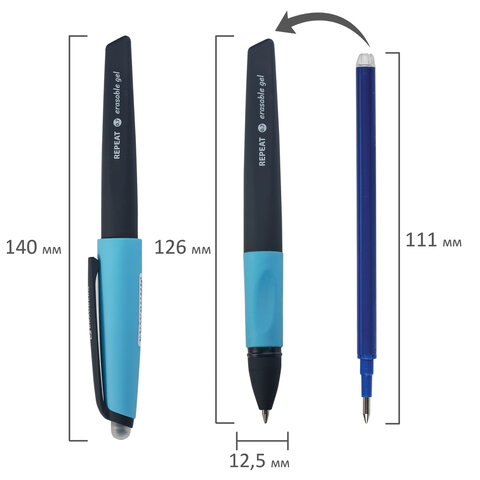 Набор BRAUBERG "REPEAT", состоящий из стираемой гелевой ручки и трех стержней, обладает уникальным сочетанием ярких обесцвечивающихся термочернил, стильного дизайна и высочайшего качества исполнения.