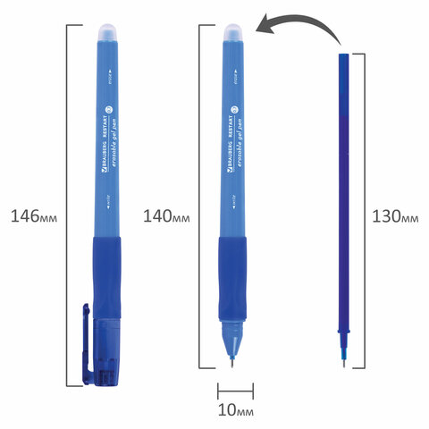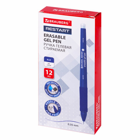 Ручка стираемая гелевая с эргономичным грипом BRAUBERG "RESTART", СИНЯЯ, игольчатый пишущий узел 0,7 мм, линия письма 0,35 мм, 144102