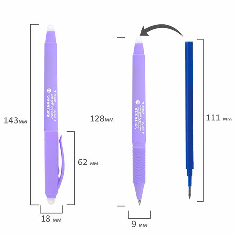 Стираемая гелевая ручка BRAUBERG "SOFT&SILK PASTEL" с покрытием soft-touch. Обладает уникальным сочетанием ярких обесцвечивающихся термочернил, стильного дизайна в пастельных цветах и высочайшего качества исполнения.