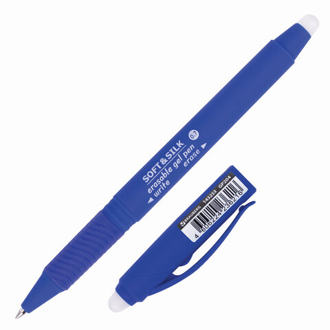 Ручка стираемая гелевая с грипом BRAUBERG "SOFT&SILK", СИНЯЯ, узел 0,7 мм, линия письма 0,5 мм, 143253