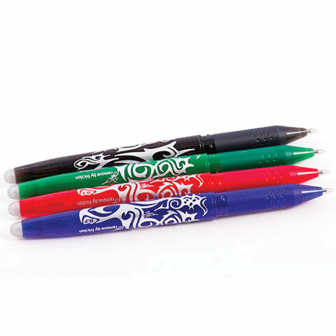 Чернила ручки “Frixion” не исчезают и не стираются, а становятся бесцветными под воздействием температуры путем стирания резинкой, встроенной в ручку, или при нагревании листа бумаги выше +60 °С. Написанное можно восстановить при температуре ниже -18 °С.
