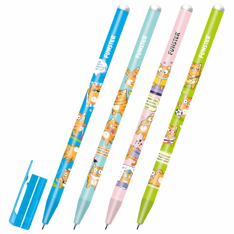 Ручка стираемая гелевая с принтом FUNSTER (ФАНСТЕР) "КОТ-ЭНТУЗИАСТ", СИНЯЯ, корпус ассорти, игольчатый наконеч. 0,5 мм, линия 0,35 мм 144414