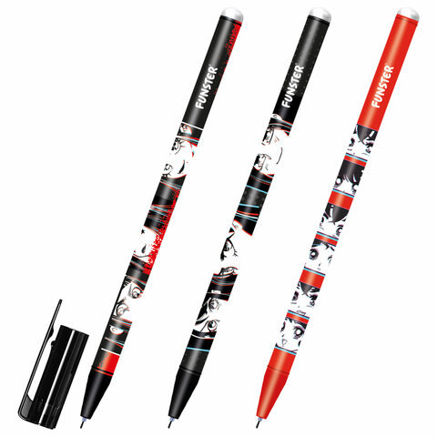 Ручка стираемая гелевая с принтом FUNSTER (ФАНСТЕР) "MANGA ANIME", СИНЯЯ, корпус ассорти, игольчатый наконечник 0,5 мм, линия 0,35 мм 144413